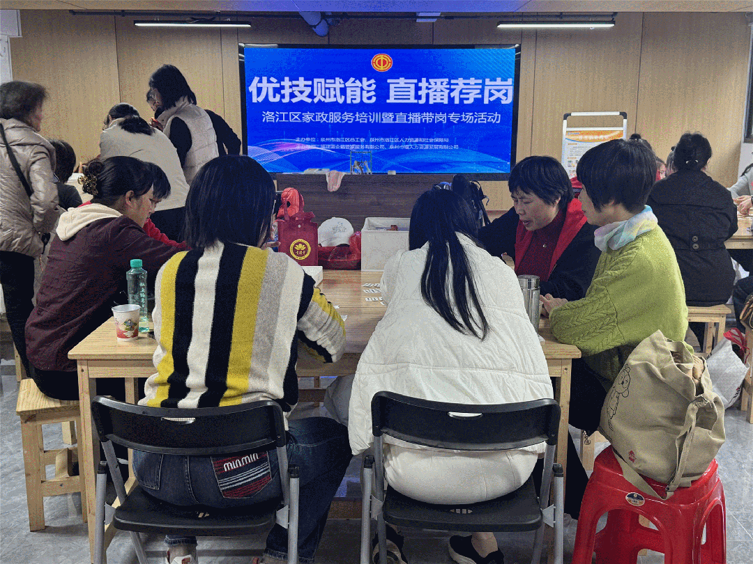 近日,泉州洛江区总工会举办“优技赋能・直播荐岗”家政行业专场服务活动。本次培训课程涵盖整理收纳与家政护理两大核心模块,授课老师结合真实服务场景拆解操作要点,通过“理论讲解+动手演练”相结合的方式,让学员直观掌握规范服务流程。培训结束后,邀请福建蓝企鹅管家服务有限公司、泉州市黄丽家政服务有限公司等7家本地优质家政企业参与“直播荐岗”活动,带来家庭保洁、母婴护理、整理收纳、社区管家等多个热门方向的就业岗位,累计提供岗位600余个,全方位满足不同求职者的多样化就业需求。(泉州洛江区总工会 供稿)