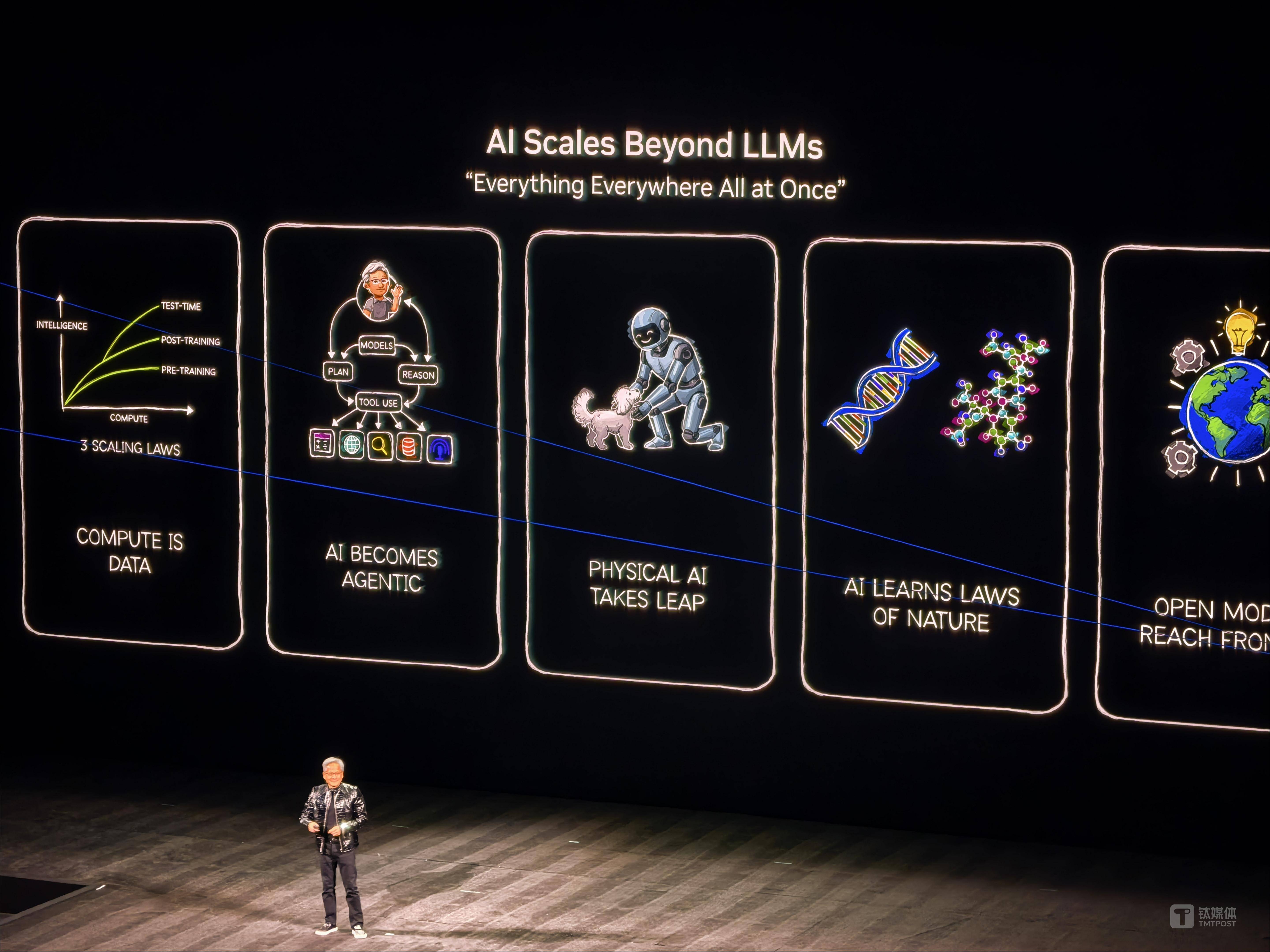 对比去年展示的AI愿景和落地的可能性,今年一个半多小时的演讲中,黄仁勋无时无刻不在传递着如何借助英伟达的AI能力去帮助企业通过更低的成本在各行各业落地,让AI像人一样思考,全力推进物理AI的落地。同时,伴随着一个个新品和战略的发布,英伟达对自己的角色定位也在发生着变化,“野心”逐渐暴露。