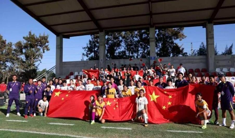 周欣怡中场断球后直塞给右边路的张小雨,张小雨下底传中,中路包抄的王婷婷推射破门! 1比0! 现场的中国球迷都跳起来了。